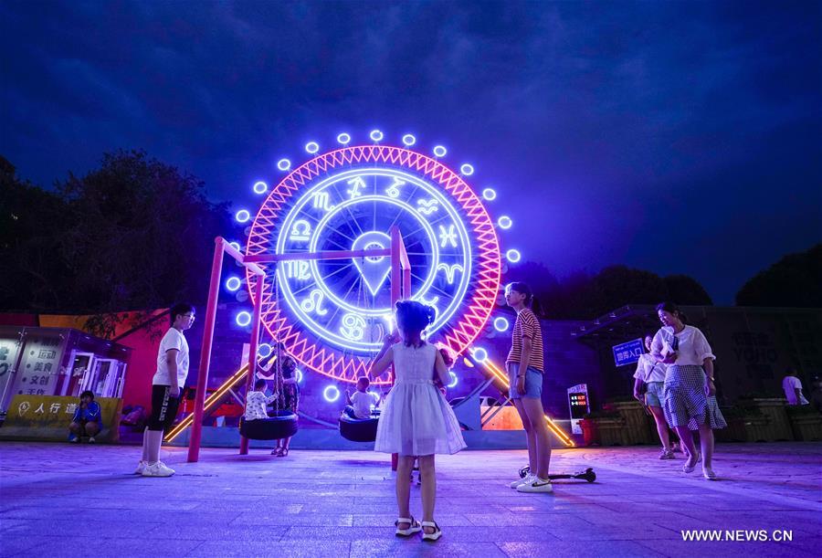 People visit a restaurant zone on street in Urumqi, northwest China's Xinjiang Uygur Autonomous Region, July 14, 2019. Night-time economy has been picking up in Urumqi since July. People enjoy themselves on cool summer nights by shopping and tasting food. (Xinhua/Zhao Ge) People take a walk at a shopping mall in Urumqi, northwest China's Xinjiang Uygur Autonomous Region, July 14, 2019. Night-time economy has been picking up in Urumqi since July. People enjoy themselves on cool summer nights by shopping and tasting food. (Xinhua/Zhao Ge) People have a rest in front of a convenience store in Urumqi, northwest China's Xinjiang Uygur Autonomous Region, July 14, 2019. Night-time economy has been picking up in Urumqi since July. People enjoy themselves on cool summer nights by shopping and tasting food. (Xinhua/Zhao Ge) Children play near an illuminated installation in Urumqi, northwest China's Xinjiang Uygur Autonomous Region, July 14, 2019. Night-time economy has been picking up in Urumqi since July. People enjoy themselves on cool summer nights by shopping and tasting food. (Xinhua/Zhao Ge)