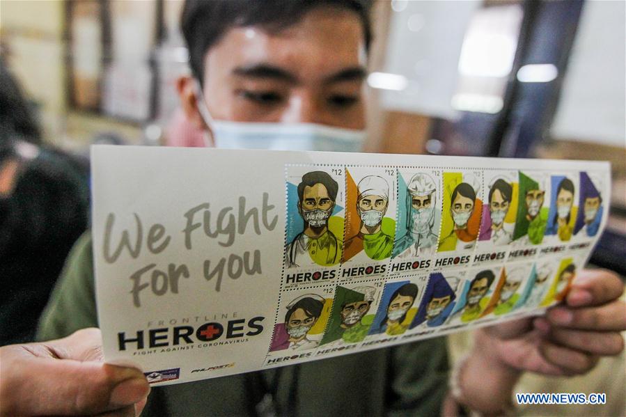 An employee shows newly-launched special stamps honoring the COVID-19 frontliners at the Philippine Postal Corporation in Manila, the Philippines on July 14, 2020. (Xinhua/Rouelle Umali) An employee shows newly-launched special stamps honoring the COVID-19 frontliners at the Philippine Postal Corporation in Manila, the Philippines on July 14, 2020. (Xinhua/Rouelle Umali) An employee holds a sheet of newly-launched special stamps honoring the COVID-19 frontliners at the Philippine Postal Corporation in Manila, the Philippines on July 14, 2020. (Xinhua/Rouelle Umali) An employee holds a sheet of newly-launched special stamps honoring the COVID-19 frontliners at the Philippine Postal Corporation in Manila, the Philippines on July 14, 2020. (Xinhua/Rouelle Umali)